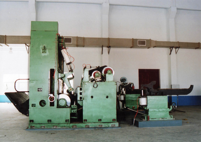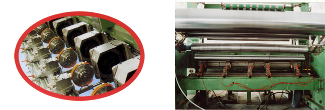 本部分為縱切裝置,本裝置的作用是將原紙分切成不同寬度的成紙,本裝置上圓刀結構為氣動控制自動實現進刀和退刀。底刀結構有兩種:一種為刀輥形式的傳動為總軸傳動;另一種是獨立的底刀即每一把底刀都有一臺特殊的電機拖動。以上兩種可根據用戶不同需求進行選擇。